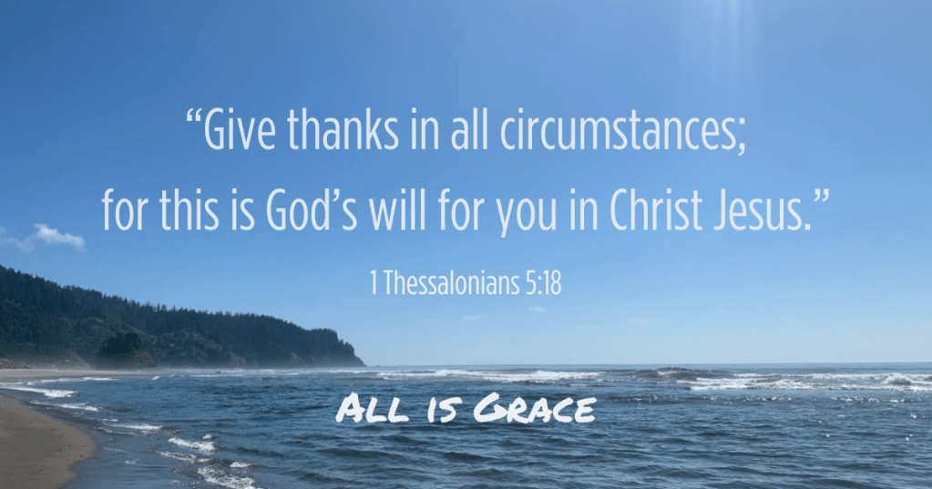 God still says to give thanks in the circumstance. Notice it doesn’t say give thanks for all circumstances but in all circumstances. Our gratitude does not arise from our circumstances but from God’s grace.